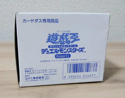 HOME遊戯王 【Booster R1 補充用品の空き箱】 2026年4月10日 遊戯王 ミュージアムTOP OCG関連アイテム類TOP <解説>遊戯王デュエルモンスターズ「Booster R1」の、カードダス筐体への補充用品が入っていた箱。 1箱に40セット(1セット:4枚)が封入されていた。 中身は空で、開封済みの空き箱のみ。 ミュージアムTOP OCG関連アイテム類TOP 【Boosterシリーズ 宣伝用シール】 【Booster R2 補充用品の空き箱】